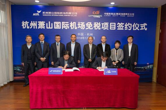 2018年1月11日,杭州蕭山國際機場免稅項目簽約儀式在機場綜合辦公樓舉行。中國免稅品(集團)有限責任公司董事長陳建山、副總經理王軒,杭州蕭山國際機場有限公司董事長王敏、總經理鄭向平以及相關人員出席了簽約儀式。