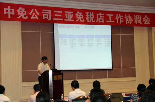 海南離島旅客免稅購物政策自2011年4月20日在中免集團三亞免稅店試點運營至今已近三月。來自中免集團總部、三亞免稅店、香港中免公司各相關業務部門的60余位負責人及業務骨干參加了此次會議。中免集團盧路總裁,趙鳳副總裁、王軒副總裁、曾江前總會計師、顧納新總裁助理等領導出席了會議并參與分組研討。